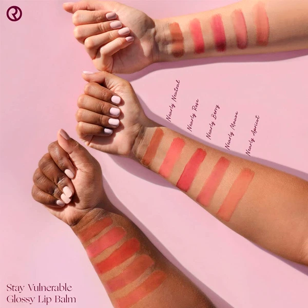 Bálsamo labial brillante Stay Vulnerable Rare Beauty es un brillo labial hidratante, no pegajoso y de larga duración que protege los labios durante todo el día con un color y un brillo suaves y nutritivos.
