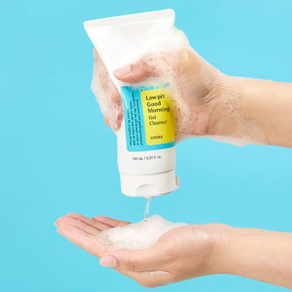 Gel Limpiador pH bajo COSRX úsalo por la mañana y por la noche, después de quitarte el maquillaje. Empieza con las manos y la cara mojadas. Exprime una cantidad adecuada en tu mano y echa espuma. Masajee suavemente en la cara evitando el área de los ojos y la boca. Enjuague con agua.