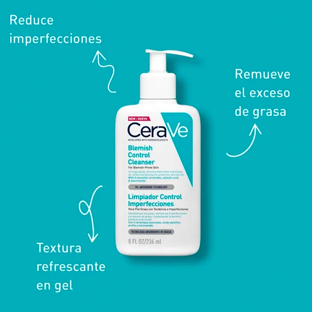 Limpiador Control de Imperfecciones: Purifica la piel con ácido salicílico.