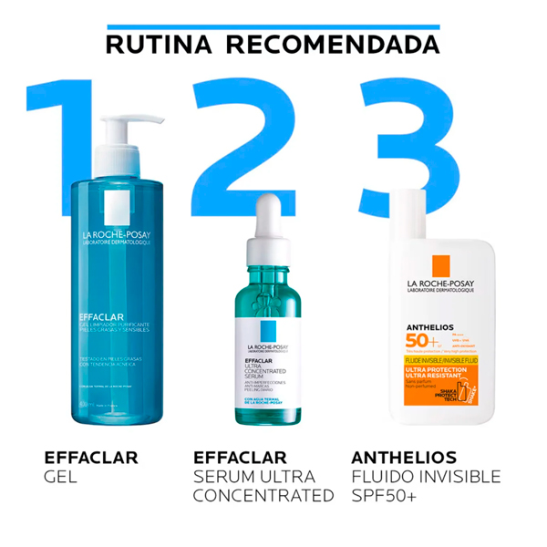 Effaclar Ultra Concentrado La Roche Posay se debe aplicar 3 gotas CUÁNDO Por la noche, sobre la piel limpia DÓNDE En toda el rostro, evite el área de los ojos. TIPS DE APLICACIÓN Masajea suavemente, ten cuidado con las imperfecciones.