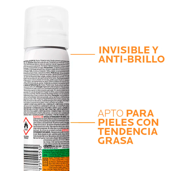 Fórmula ligera en spray que proporciona control del brillo. Protege la piel de los rayos UVA y UVB y ayuda a prevenir los daños causados por los infrarrojos A y la contaminación. Resistente al agua de rápida absorción con acabado mate.También apto para pieles con tendencia alérgica especialmente al sol sin perfume. Se puede aplicar alrededor de los ojos. Anti-escozor de ojos. Hipoalergénico. ULTRA LIGERO Y DE TEXTURA INVISIBLE Bruma invisible indicada para pieles grasas con tendencia acnéica.